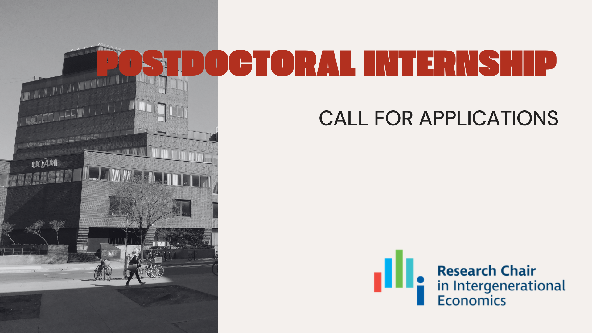 - Affiliation with the Research Chair in Intergenerational Economics and access to the social benefits of the Université du Québec à Montréal.